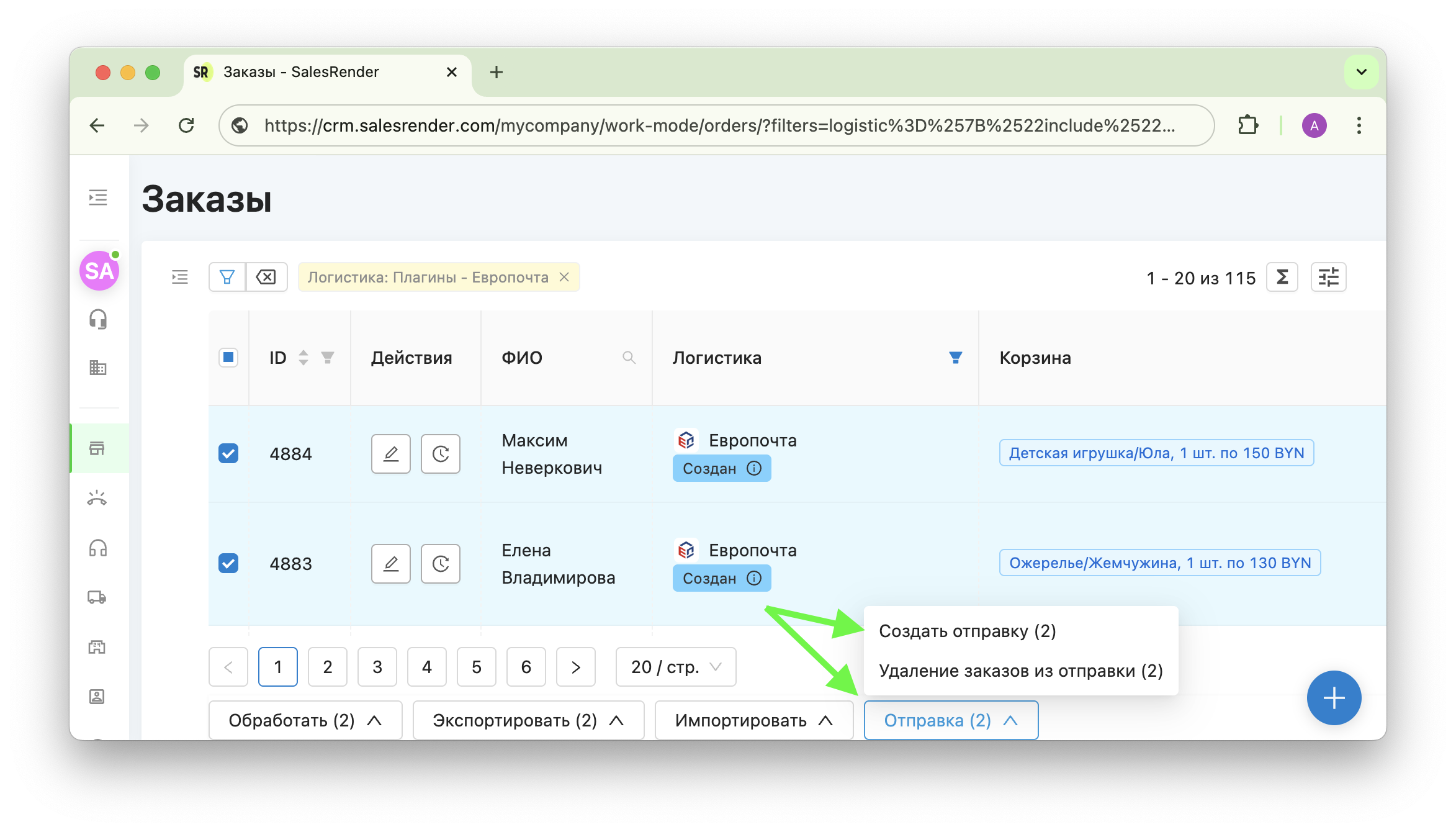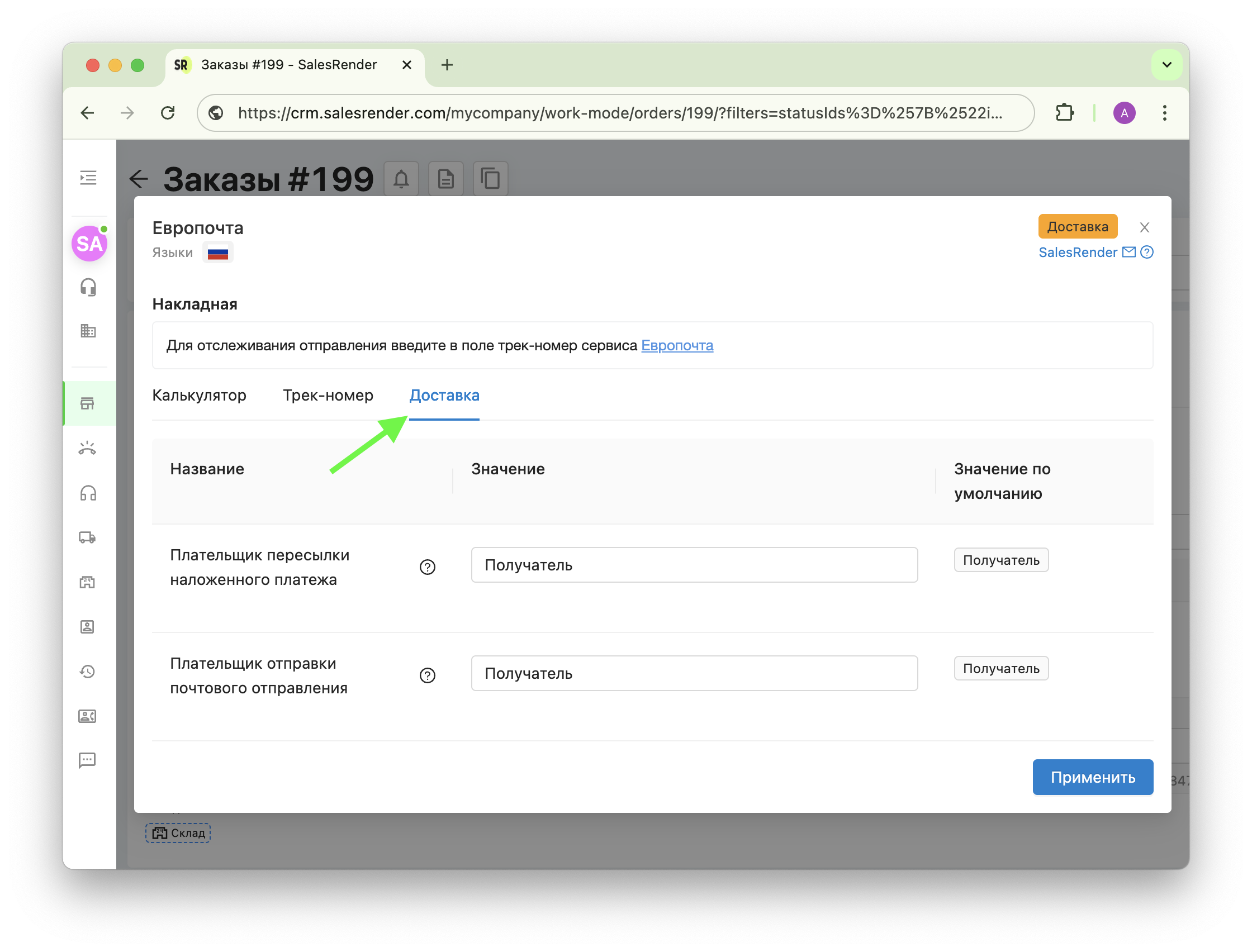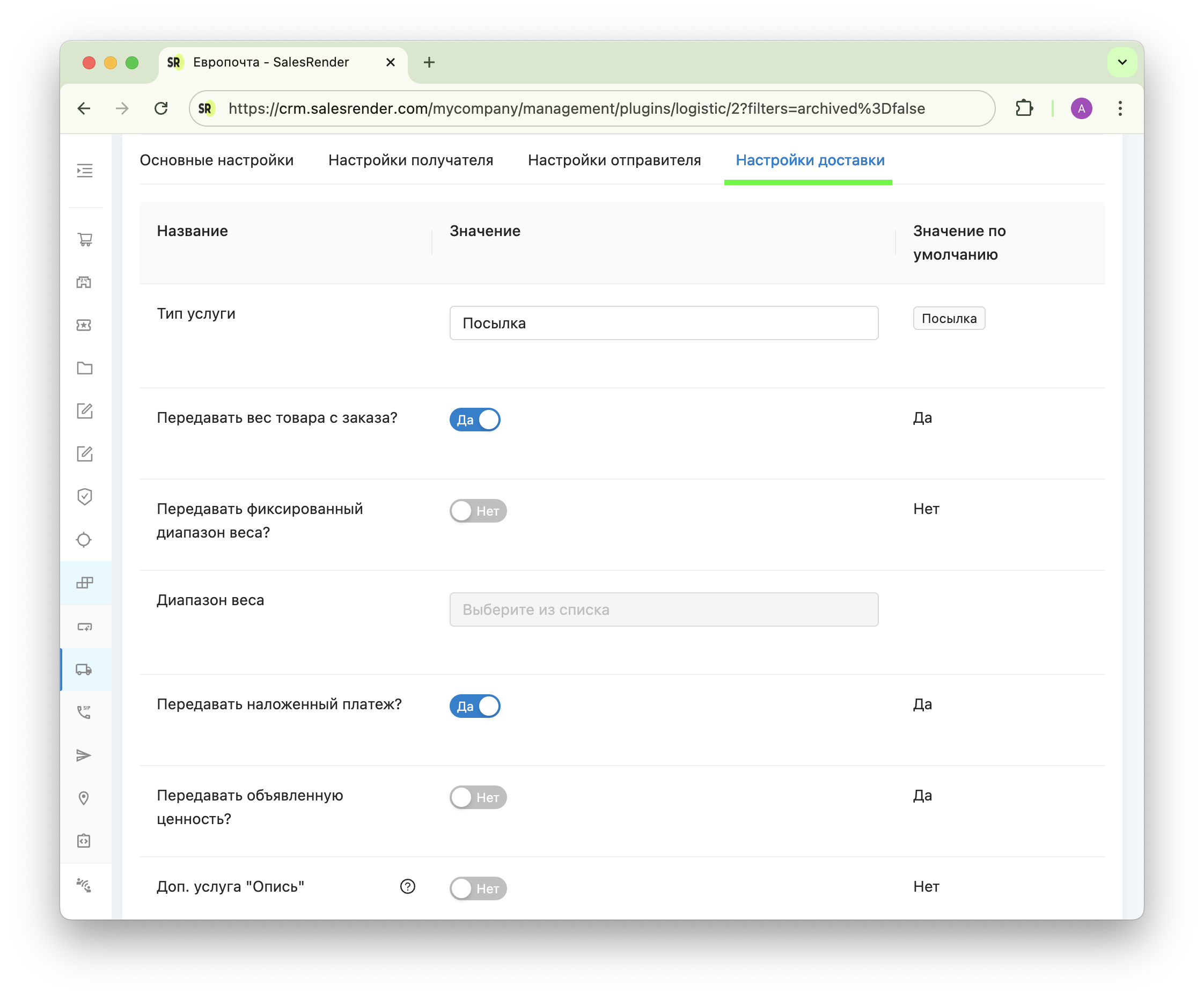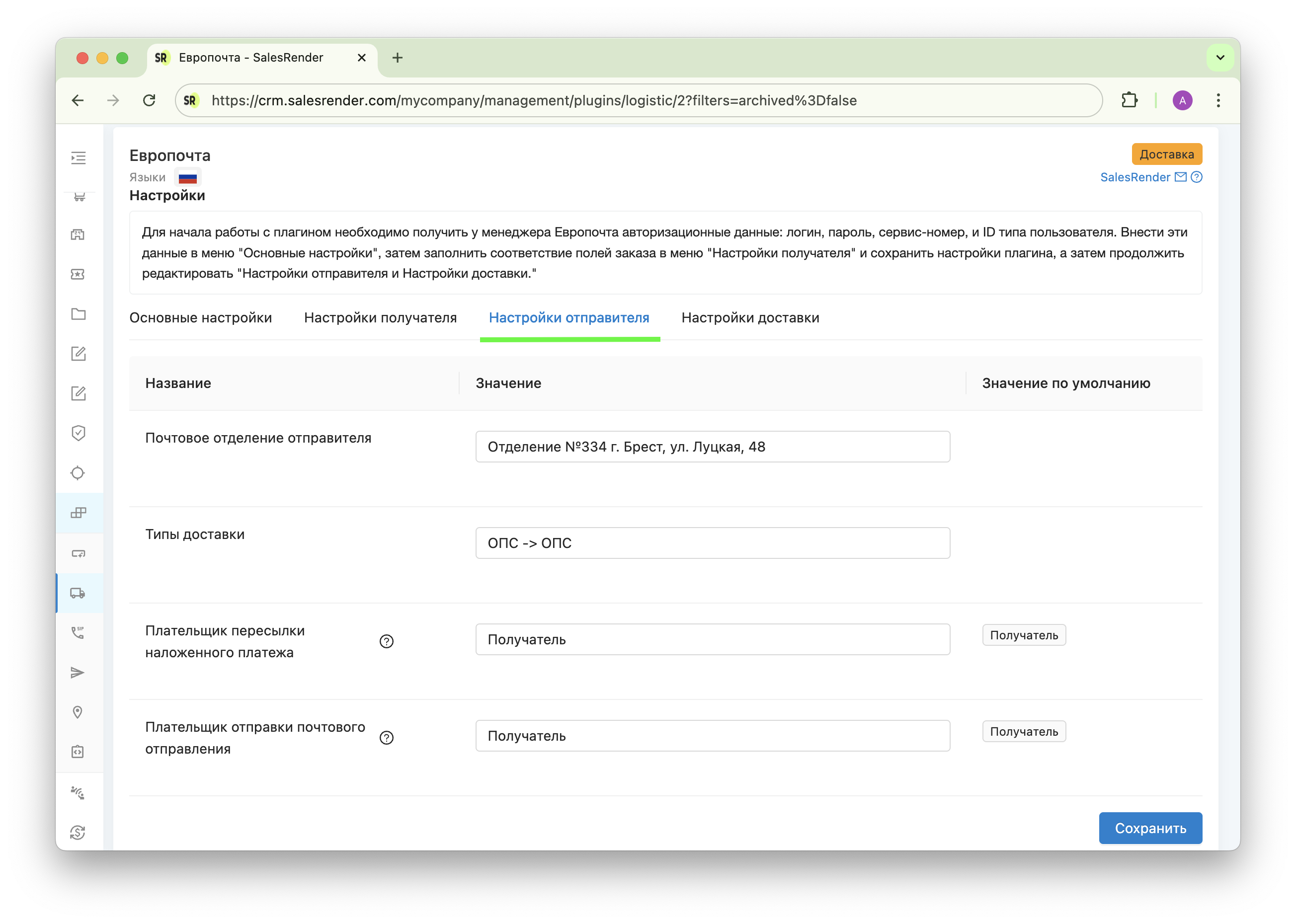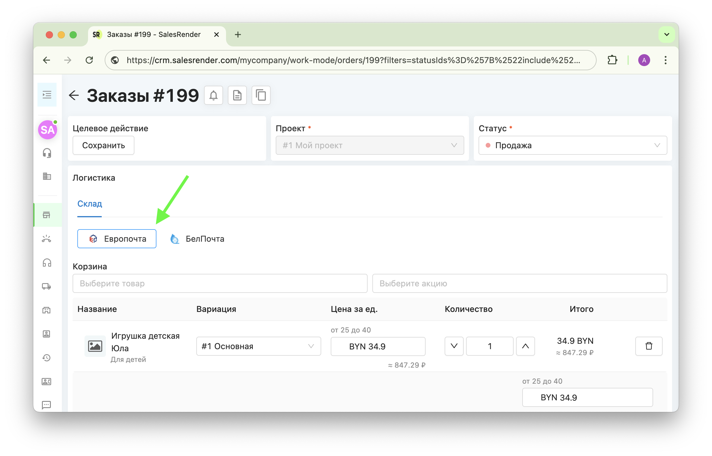 Фактически, весь цикл работы с заказами Европочты можно делать, не выходя из CRM.