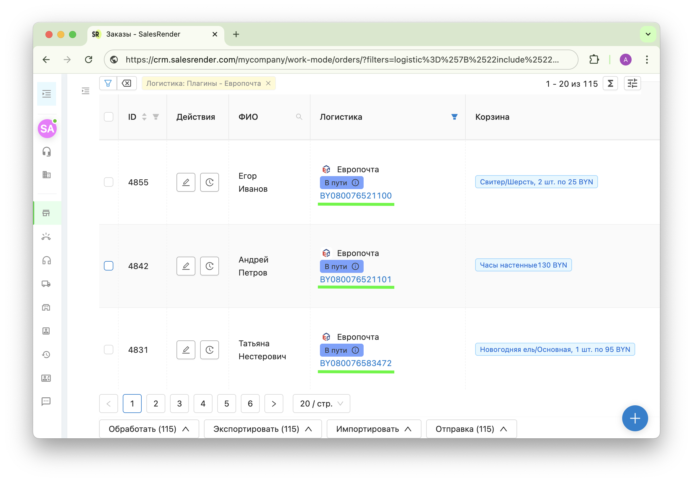 После этого заказы отправляются в Европочту и та сообщает нам трек-номер, который начинает отслеживаться автоматически.
